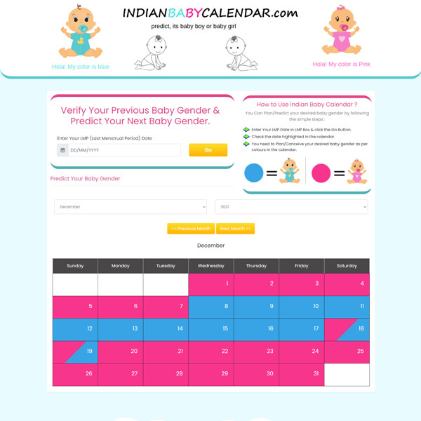 Indian Baby Calender